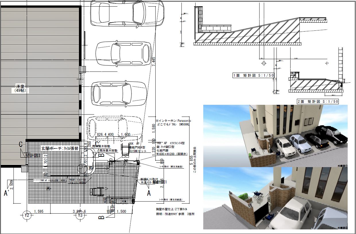ライフ・ホーム株式会社では図面による確認を徹底しています。工事金額が小さいからといって見積書だけの提出だけではなく、図面による確認し、平面図ではわからないところは断面や展開図にて確認を行い、お客様の相違がないようにしています。またパースによりより詳しく確認をしていきます。