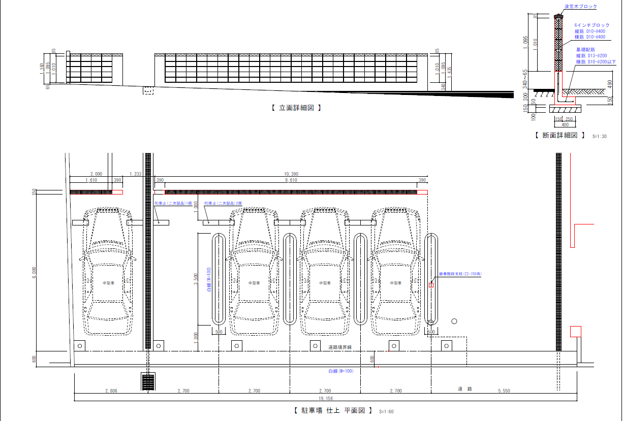 上記は別の現場ですが、お持ちの車種での図面で、駐車場拡張の提案もできます
